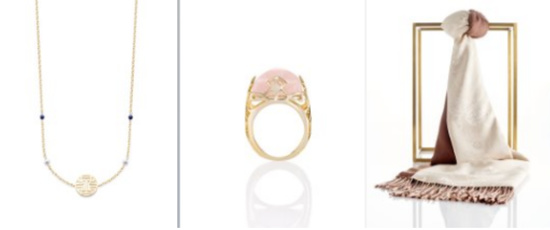 上海滩Shanghai Tang最新上线的多款服装中,大量注入了中国结、虎纹等具有幸福、繁荣和健康的象征意义的中华元素。具有中国文化的时尚设计加上中国丝绸、蒙古羊毛绒等多种华贵上乘的天然面料,让上海滩Shanghai Tang这个中式时尚品牌经久不衰,熠熠生辉。东方美学中有的不只是服装,还有相得益彰的配饰。格子纹宝石项链和格子镂空复古宝石戒指的成套首饰,配合幸运符护身符双色流苏披肩的点缀,为高贵优雅的气质平添些许时尚和女性独有的魅力。