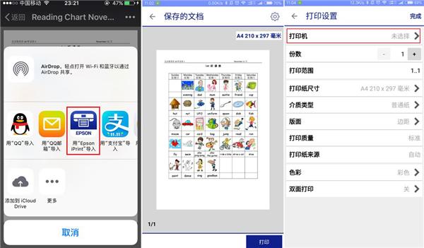 关于打印作业,L4158还有什么方便的奇招?答案是手机APP打印,适合能用手机解决问题坚决不开电脑的家长。比如看到微信里老师发的作业,习惯性点开文档看一下作业内容,如果手机上安装了Epson iPrint的话,看完之后在右上角选择“用Epson iPrint”导入,连接上打印机发送打印指令,就能打印出作业(APP打印功能需要在打印机附近操作)。