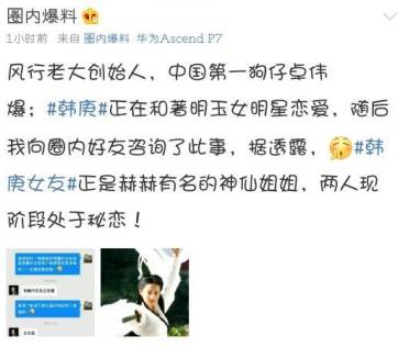 没过多久,韩庚被拍到深夜密会女星牛萌萌。