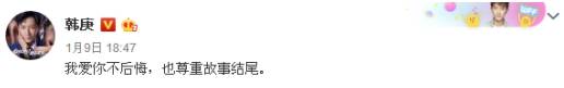 而韩庚也在微博上写下“我爱你不后悔,也尊重故事结尾。”