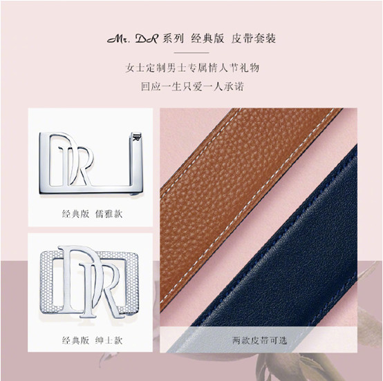 皮带触感厚实,质感精致,专属DR标记,彰显真爱男士的身份象征。愿你今生的所有温柔付出,都有深情回应。你承诺一生只爱一人,他亦回你一世情深,DR首款男士皮带, MR.DR系列帅气上线,女生快来挑一款,回他一份情人节惊喜吧!皮带有着“拴住一生幸福”的浪漫含义,非常适合作为女孩子的心意回应哦。