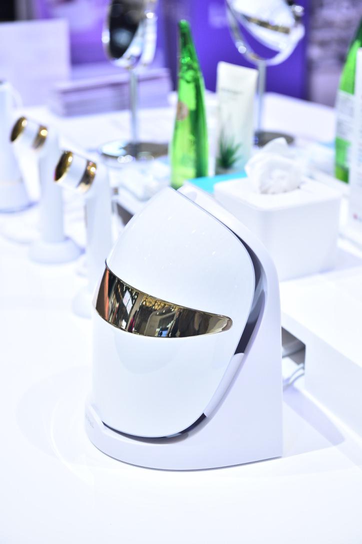 光彩透亮LED面罩将120个LED光源内置于面罩之中,60个红光LED及60个近红外线LED。630纳米附近的红光照射皮肤,可使皮肤年轻化。波长850纳米的近红外线照射肌肤,可以加快血液循环,更新细胞生长,让皮肤更加透明紧实。每天9分钟,就像敷面膜一样方便,戴上后眼部肤色提亮5.2倍,眼部真皮层致密度提高19.7%,面颊色素改善29.6%,皮肤变得更有光泽、富有弹性。