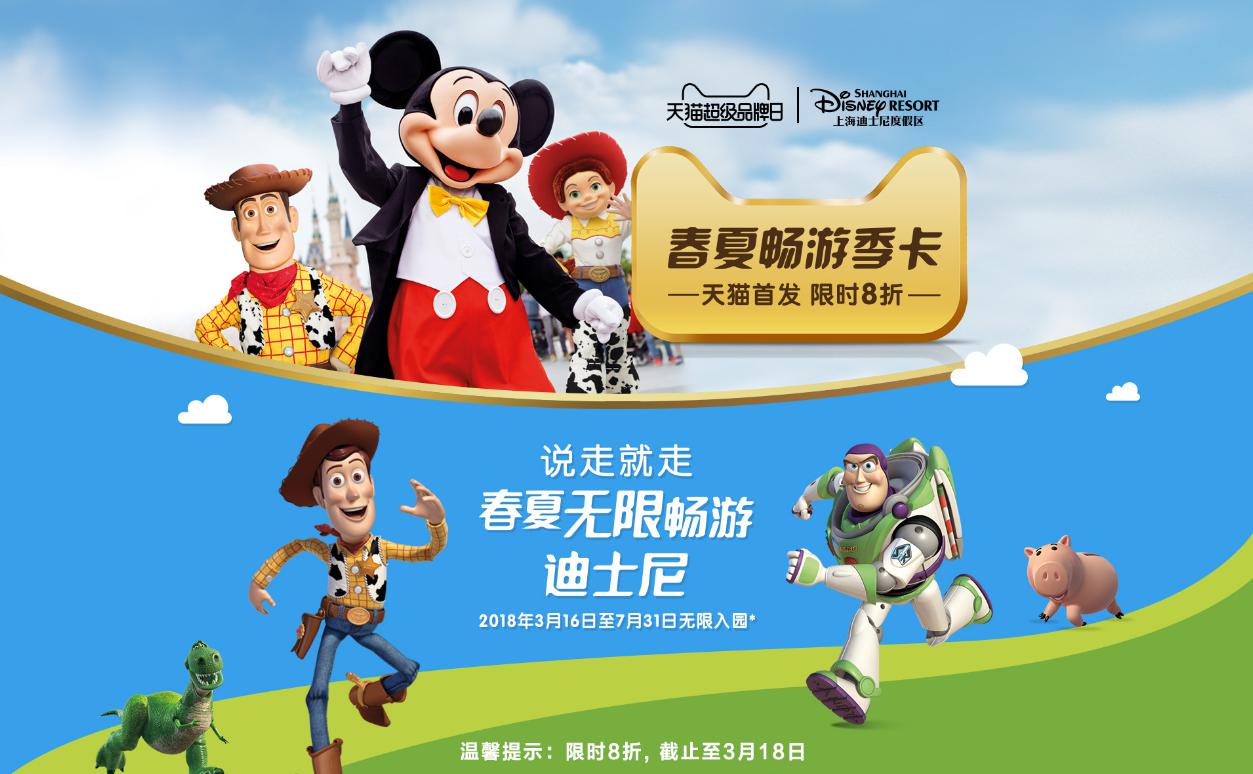 作为中国内地首个迪士尼乐园,上海迪士尼的火爆程度从开园之日起就延续到今天,本着为用户升级消费体验的初衷,天猫超级品牌日特别与上海迪士尼合作,在天猫首发春夏畅游卡早购限时优惠活动。