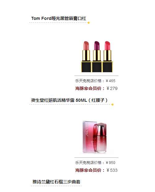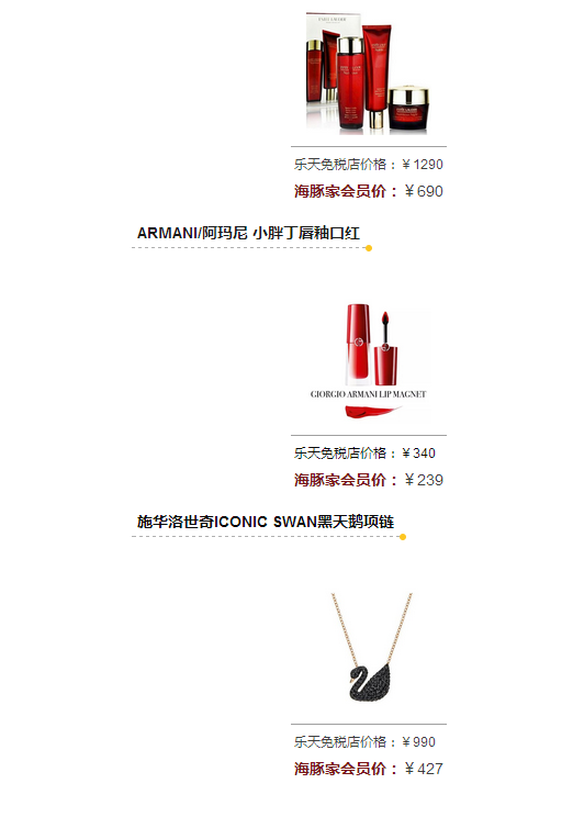 不仅列出的这些哦,海豚家有三万种商品会员价都比京东的双十一还便宜呦!而且好多乐天免税店的抢手断货王都能买到哦!