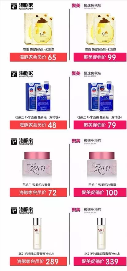 春雨面膜,海豚家会员价才65,聚美卖99