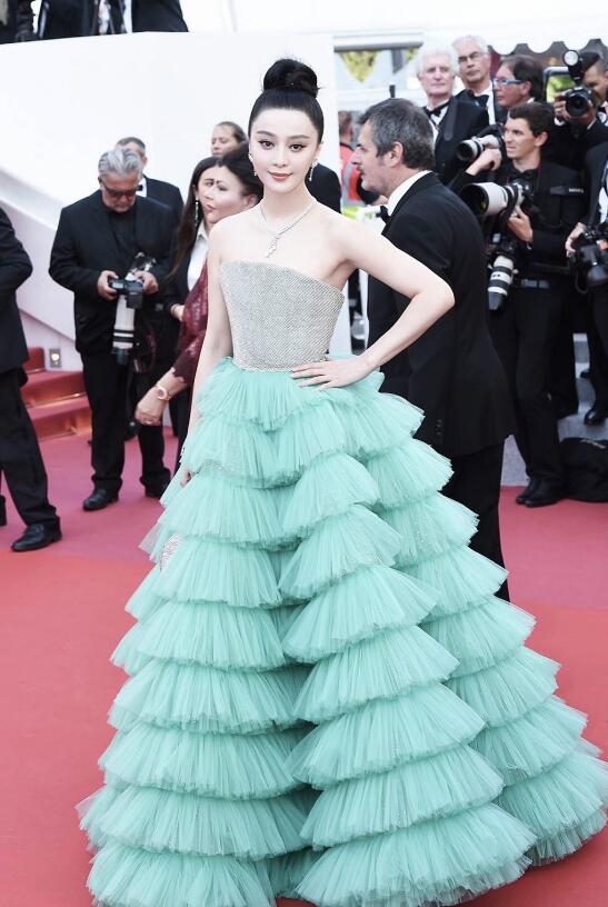 戛纳电影节红毯向来都是女星争奇斗艳的地方,已经是第8年亮相的范冰冰“范爷”在开幕式上一袭抢眼绿色蛋糕长裙,顶着“红毯女王”的称号不失水准。