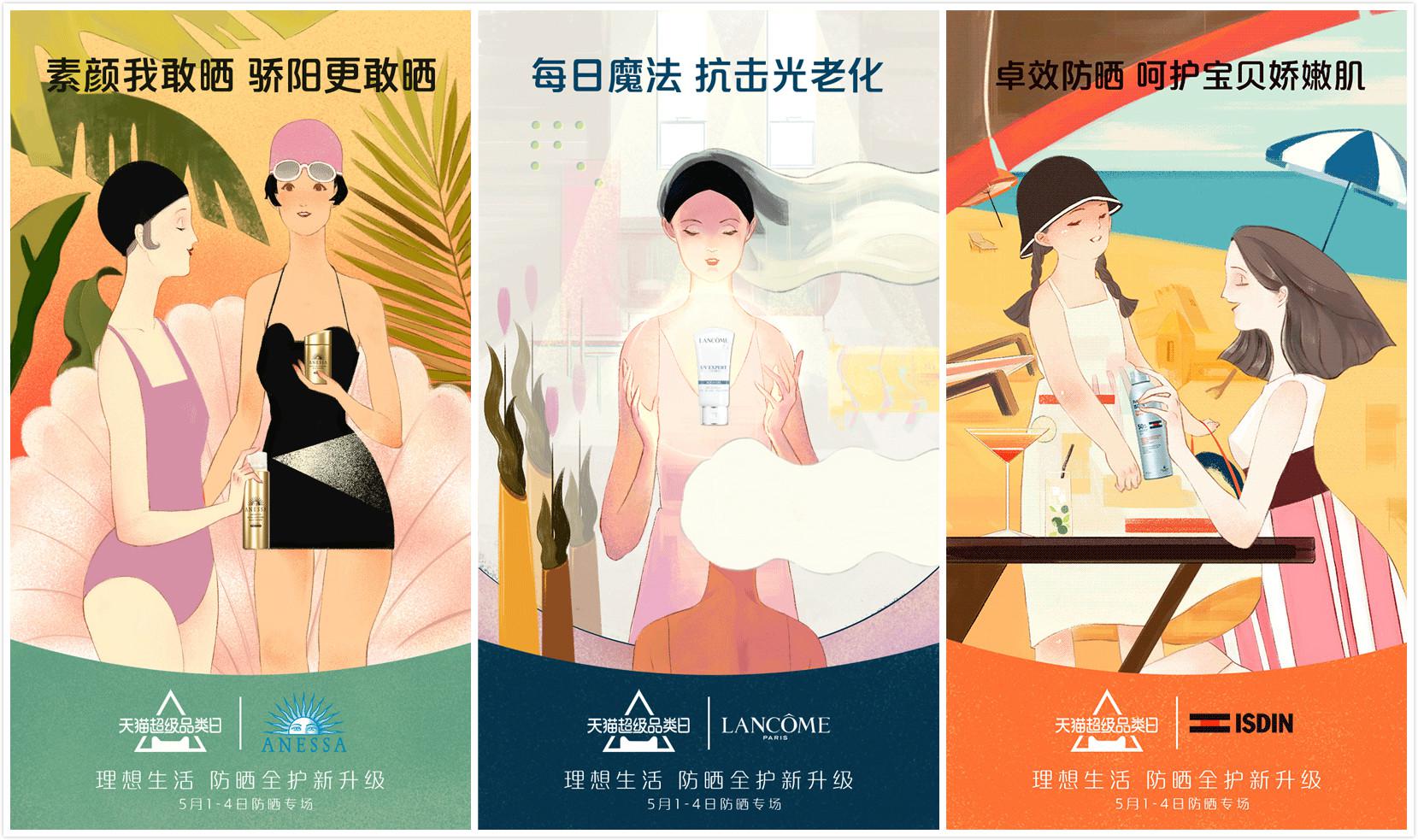 防晒是一门必修课,但很多防晒细节却常常被大家所忽视,导致保养品都白涂,要知道防晒才是护肤的最后一步。为此,本次天猫超级品类日触及防晒护理知识,为消费者打造三大防晒趋势概念——户外超敢晒、抗击光老化、敏感肌专用,全方位守护白皙肌肤的同时,升级防晒意识和品质生活理念,引导教育消费者重视每日防晒。