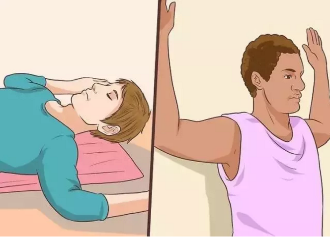 平躺或是倚靠在墙面,做“举起手来”的动作,让手臂紧贴地面/墙面上下轻扫,保持2-3分钟。