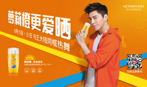 温碧泉代言人王大陆阳光健康的皮肤给我们留下深刻印象,阳光大男孩空降美拍,玩转小巧可随身携带的萝莉橙,创新的「抛、亲、摇、放」防晒四招式,无限开发我们隐藏舞蹈技能,让我们享受夏日倾情。