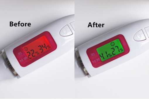 延展性很棒,轻轻涂开便是轻薄的一层,不会给肌肤造成负担,也特别适合现在的季节。即时补水效果很明显,使用后的肌肤,含水量提升至41%,同时油份下降,水润又清爽。而肌肤弹性也从使用前开红灯的哭脸变成了绿色的笑脸,这华丽丽的对比效果,必须要赞一个!