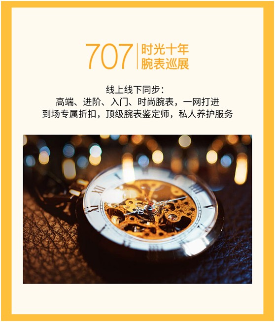 从6月1日开始,寺库十年时光巡展腕表促销活动也将于北京开启,陆续在厦门、成都、重庆、青岛、上海等全国10个城市举办,寺库707时光十年腕表巡展,线上线下同步:高端、进阶、入门、时尚腕表,一网打进,到场专属折扣,顶级腕表鉴定师,私人养护服务。