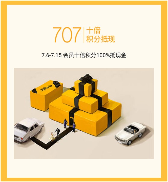 寺库707十倍积分抵现,你的积分可以当钱花了,会员在7月6日-7月15日可以享受十倍积分100%抵现金的活动,这么好的福利你还在等什么?