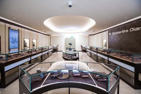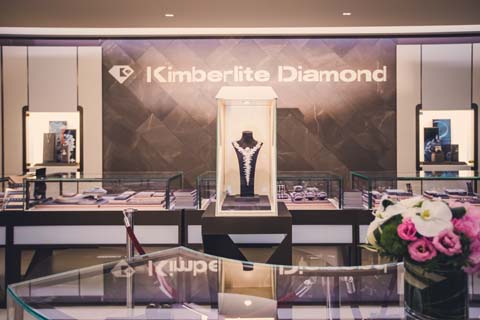 店内展柜陈列有金伯利钻石高级珠宝延伸商业款和精美新款钻饰,宾客可莅临门店试戴挑选,更可定制专属自己独一无二的克拉艺术珍品,将时尚和优雅佩戴于身。