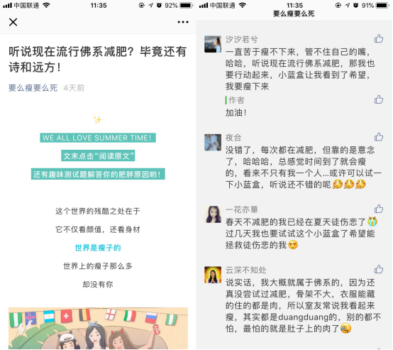 小蓝盒在微信:通过趣味软文,收获了无数好评。