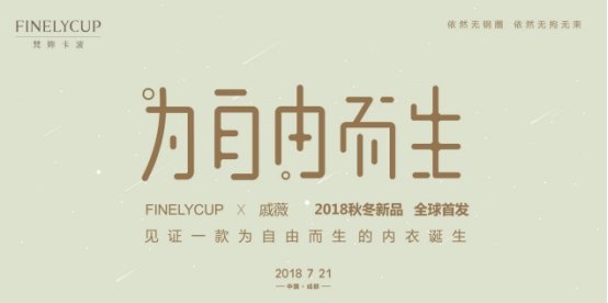 如今,已发展成为链接全球300+线下内衣生活美学馆及30000名合作伙伴的“梵妳卡波(FINELYCUP)”,将于7月21日在中国成都举办2018秋冬新品发布会。届时,“梵妳卡波(FINELYCUP)”将在“依然无钢圈,依然无拘无束” 这一代表女性健康、自在、舒适的品牌理念上,和戚薇邀您共同见证这款“梵妳卡波(FINELYCUP)”与戚薇历经两年共同打造的“为自由而生”的内衣诞生。