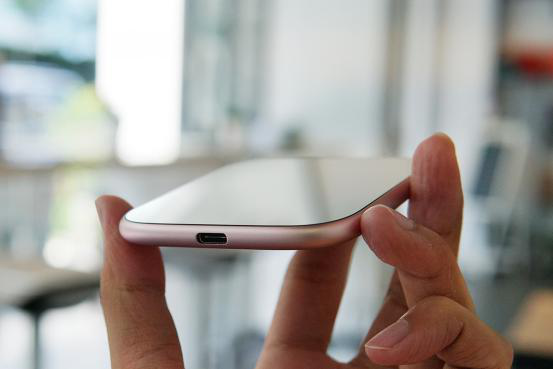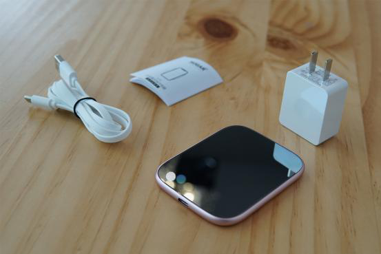 无线充电器是圆角长方体造型,非常的纤薄小巧;正面是一整块镜面,镜面采用了进口玻璃CNC加工+8小时真空电镀而成,活生生的一块化妆镜,非常适合女生补妆时使用。