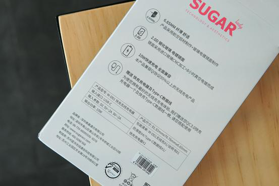 SUGAR LADY化妆镜无线充外观采用圆角长方体造型设计,6.65mm的纤薄机身,时尚小巧,方便携带;四周采用了圆弧处理,背面磨砂手感的航空铝材质,拿在手上并不会硌手,手感一级棒 ,加上体型纤薄小巧,非常适合女生握持;正面镜面采用了进口玻璃CNC加工+8小时真空电镀而成,镜面效果清晰,持久耐用,随时随地可补妆,很实用,简直就是为女朋友(女生们)专门设计的,男生们可以不用愁不知道送什么礼物了。