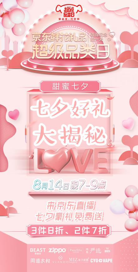 除了鲜花礼品的万件甜蜜好物,这里还将有京喜连连的甜蜜情话;京东鲜花礼品将在8月14日晚7点-9点之间,在京东直播上线一期甜蜜爆棚的直播综艺,为你拆解「七夕送什么」的情感攻略;届时,奇葩说御姐王濛、东南卫视最美女主播刘冰将与另外4位嘉宾一起嗨翻七夕,给你七夕情话、送礼的双重攻略!节目中还有神秘情侣空降,现场示爱求婚,让百万网友一起见证他们的甜蜜时刻!