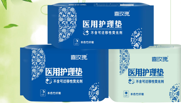 喜玫瑰竹纤维卫生巾从生活本质出发,为中国女性提供安全、健康、舒适的卫生巾,避免各类妇科疾病的侵袭。传统卫生巾的颜色为白色,而喜玫瑰竹纤维卫生巾则呈现竹本色,这是因为它的主要成分是本色竹纤维面料、无尘纸、无纺布包膜、热熔胶、离型纸、高分子吸水树脂等等,成品无添加、无漂白、无荧光剂,对于人体无伤害。因此它也广泛应用于各大医护治疗中,是一次性使用病床或检查床上卫生护理用品的优选品牌。