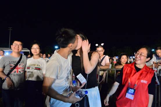 但现场最最令人惊喜的,还当属荷尔蒙爆棚的接吻比赛了。当音乐节现场氛围达到高潮时,主持人发起了游戏号召,众多情侣在近三万观众的注视下互表爱意、深情拥吻,场面十分唯美、浪漫,完美诠释了电影《公主新娘》中的台词,“自从吻的出现,一切都是那么地热情,那么地纯粹”。