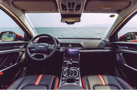 坐入车内,哈弗H4的内饰设计前卫,以沉稳的黑搭配耀眼的红,让年轻运动气质显露无疑。哈弗H4采用的是科技感十足的悬浮式中控台,中控屏与副仪表盘相连接,按键设计在屏幕下方,不仅美观操作也便捷。内饰运用了大量的软质材料,犹如豪华车型般的视觉效果和触感,让哈弗H4由内而外的吸引了人心。