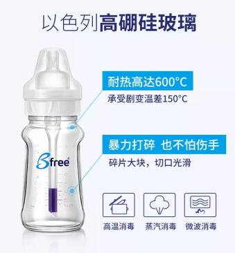 Bfree玻璃奶瓶的的瓶身使用的是高硼硅玻璃材质。