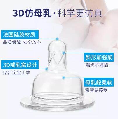 这种硅胶材质就像妈妈肌肤柔软质感,减少宝宝对奶嘴的排斥现象,软软萌萌让宝宝更快适应奶瓶,稳定宝宝的情绪。