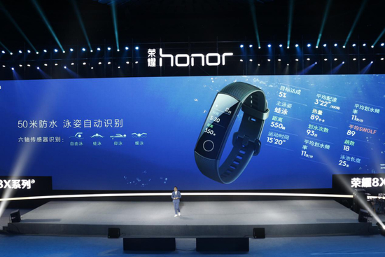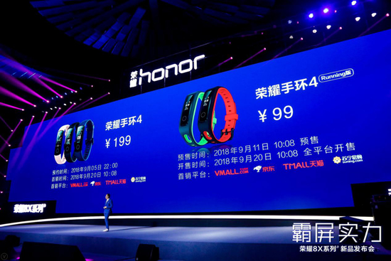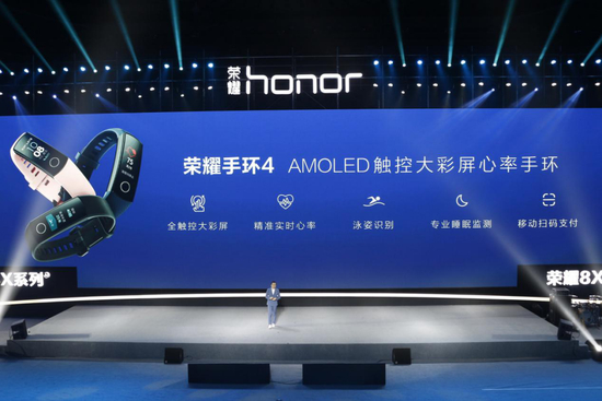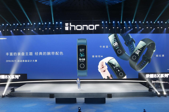 2018年9月5日,荣耀秋季新品发布会在西安召开,正式发布了最新千元旗舰8X系列以及荣耀手环4系列。荣耀8X和荣耀8X Max屏霸组合震撼亮相,旗舰配置重新定义千元机;而“AMOLED全触控大彩屏”荣耀手环4的出现,则打破了手环行业充斥黑白屏的局面。作为年轻人的潮流运动必备,荣耀手环4将凭借产品配置、外观设计和佩戴体验上的强悍性能引领智能手环行业进入彩屏时代。