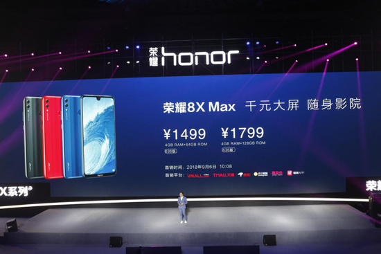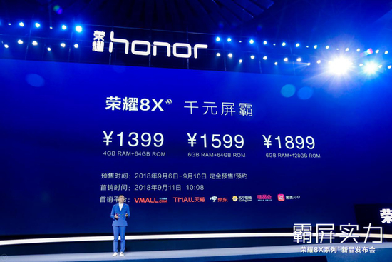 目前主流厂商发布的屏占比90%以上及配置旗舰级芯片的全面屏手机,价格都在3000元左右甚至更高。而荣耀8X系列不仅配置了麒麟710旗舰级芯片,屏占比高达91%,且搭载AI智慧通信、AI双摄、杜比全景声、德国莱茵TÜV低蓝光认证等旗舰配置。而荣耀8X 1399元起、荣耀8X Max 1499元起的屠夫式价格,使该系列成为1000元-1999元价位档的不二之选和手机换代首选。