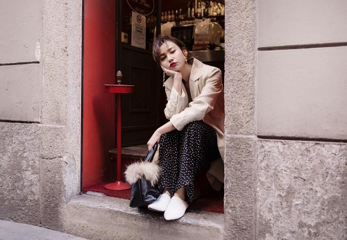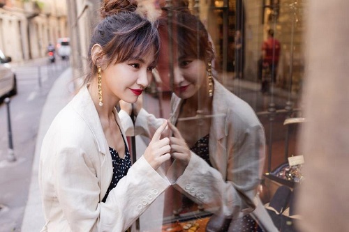 倚靠橱窗边,有《蒂凡尼早餐》里的奥黛丽赫本feel