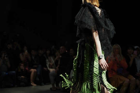 设计师在服装设计中运用了大量的荷叶边与褶皱设计,超酷同时又不失甜味。配上EONE最新设计的星轨系列手表,擦出不一样的时尚火花。