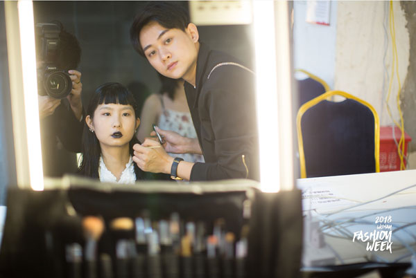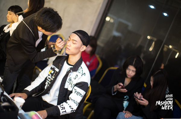 这次,小编要探秘的除了台前走秀还有后台试妆。随着工作人员指引,穿过舞台,走向后台,探秘时装周另一面。这里弥漫着光晕,工作人员在繁忙中却又有条不紊。一边是正在被化妆师做造型的女模一号,一边是镜子前试穿服装的男模二号,还有散发着国际标准气质的外模三号……他们在试妆间为自己的台前两分钟做着充足的准备,在纵横交错的香水味间,我忽然感受到人们对“前沿时尚”骨子里存在的仪式感。