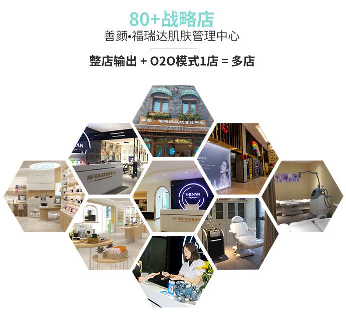 “我们为旗下代理营造了完善的个人提升机会,代理可以通过商学院的培训,学习理论知识,管理知识、个人能力的提升以及渠道的开发,让自己成为一个成熟、全面的美业创业者,以善颜为起点,创造自己的美肤事业。”来自善颜福瑞达的负责人表示,目前品牌推出80+战略店计划,整店输出+O2O模式1店=多家店铺。