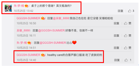 眼尖的网友很快就发现了在桌子上的这个小瓶子,十分好奇这个小瓶子是什么产品,是不是张馨予一直保持靓丽容颜的秘方呢?因为照片中张馨予的状态出奇的好,皮肤白皙光滑又透着健康的光泽。很快,评论中就有人道出了真相: