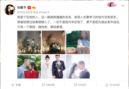 于是吃瓜群众们在张馨予近期的每一张照片里都细细分析婚姻带来的变化,不少网友都发现张馨予换了个新发型,对这个显脸小的新发型好评如潮,但他们还想从照片中其他的蛛丝马迹中了解到她的近况。