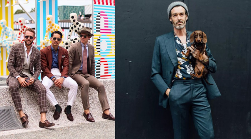 在西装的选择上,酒红色、亚麻色、墨绿色都不错,条纹、格子也比较百搭,一些趣味花纹小面积点缀则会让整体活泼不少。材质方面,灯芯绒、斜纹棉、亚麻都值得你去挑战。