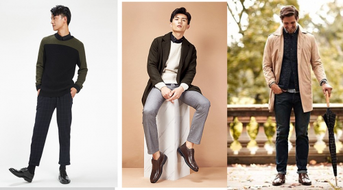 上装方面,毛衣、风衣、毛呢大衣、牛角大衣,都可以搭配皮鞋,让整体造型在精致的同时也不失休闲。