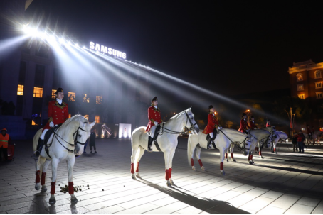 2018年11月9日 “心系天下三星W2019新品发布盛典”于极具欧洲风情的小城——无锡江阴海澜飞马水城优雅举行。尊贵非凡的欧式建筑,以及西方富含尊贵骑士精神的马文化,赋予海澜飞马水城奢华小城称号。海澜飞马水城以皇家骑手至高礼仪,迎来了三星W2019的尊贵宾客,在高雅的迎宾仪式中,宾客缓缓进入会场。