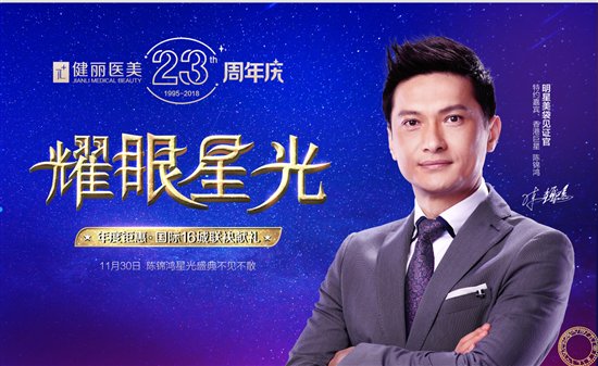 11月30日,健丽23周年庆典广州站—星光盛典将全面盛启,香港巨星陈锦鸿携手百万大礼助力健丽医美23周年盛典。健丽国际16城院长将齐聚羊城,2018年十二大美袋真人案例惊艳走秀,价值38万的健丽锦鲤将在星光盛典中诞生。群星闪耀,诚意满满,健丽医美国际16城联动盛典起航。