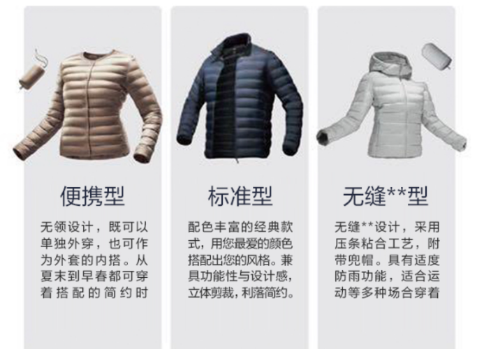 它既要轻盈又不失温暖,灵活且不占空间,防水防风抵御风雨侵袭,多彩百搭让你时尚有型,穿出多样精彩。