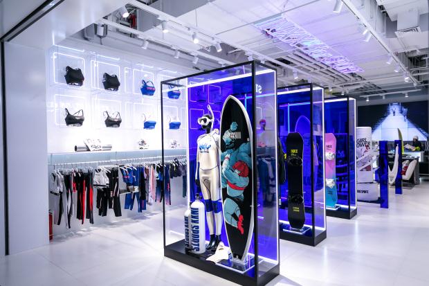 作为 INXX SPORTS 首家线下门店,INXX SPORTS 嘉里中心店简练的结构线条与色块的打造出了充满运动感的空间,满载专业与潮流并存的运动服装与装备。