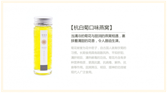 悦和顺润养系列即食燕窝四中口味:菊花、茉莉花、红枣、蛹虫草: