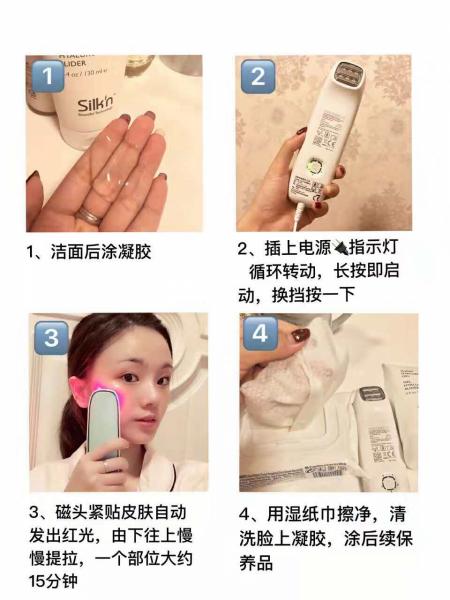 IR红外线可以击退皮肤暗沉,恢复光泽感;射频LED红光可以穿透至真皮层,刺激胶原蛋白,提升皮肤的弹润感。RF多极射频有效改善皮肤松弛和减少皱纹的问题,使皮肤更加紧致有弹性,烫平细纹。建议一星期使用2次,5-10星期可达到最佳效果。