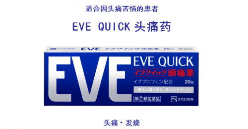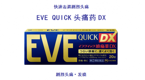 EVE QUICK与金色加强版EVE QUICK DX头痛药针对因头痛而苦恼的人,可快速缓解头痛。相比其他的头痛药产品,它的主要优点是见效快和效果好。这是因为它添加了氧化镁成分,既可以加快镇痛成分在体内的溶解,又可以保护胃黏膜。