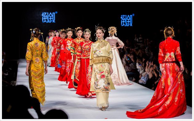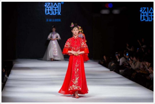 倒叙,中式礼服领域的创新者,以“无问西东”为主题,将中国风以崭新的形式呈现给我们,让我们感受到全新时代的中国风。独特的设计、精致的剪裁、体现对中式嫁衣的时尚感。柔美的色彩也是倒叙本季设计亮点,闪银、天蓝,亮金,中国红、雾霾灰、耦合色、如此温雅的色彩透露出年轻人时尚,大胆的性格。不管是印度丝,土耳其提花,还是真丝宋锦,都无一不体现高贵的美感。而较为西式的蕾丝钉珠与中国传统元素结合在一起,更加年轻化,多样化。