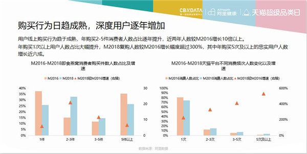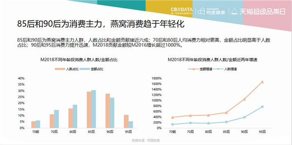 从消费人群来看,85后和90后为消费主力,燕窝消费趋于年轻化,95后新客占比更突出。而且,消费频次不断提高,深度用户购买行为日渐成熟。