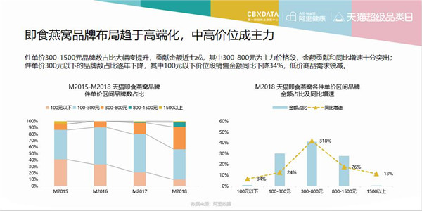 与国人消费升级的大势相一致,品牌号召力进一步凸显,消费者对头部品牌喜好度提升,释放强劲购买力,即食燕窝逐年涌现销售规模千万以上品牌,而且数量逐渐递增。而且,品牌布局趋于高端化,中高价位成主力。