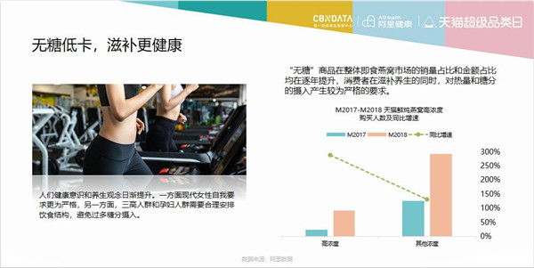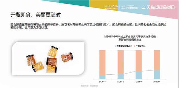 在现场,天猫超级品类日联合阿里健康和第一财经,发布了《天猫即食燕窝行业发展趋势报告》,深度揭秘了即食燕窝行业发展趋势和用户消费特征,国人燕窝消费的市场规模、人群属性、细分类型、消费额度、消费趋势等一览无余。
