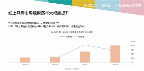 从报告中可以看出,即食燕窝消费崛起,或为市场新兴机会点,线上燕窝市场规模逐年大幅度提升。