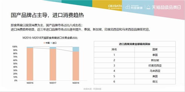 与很多人的想象或许有所不同,国人即食燕窝消费中国产品牌占主导,同时进口消费趋热。